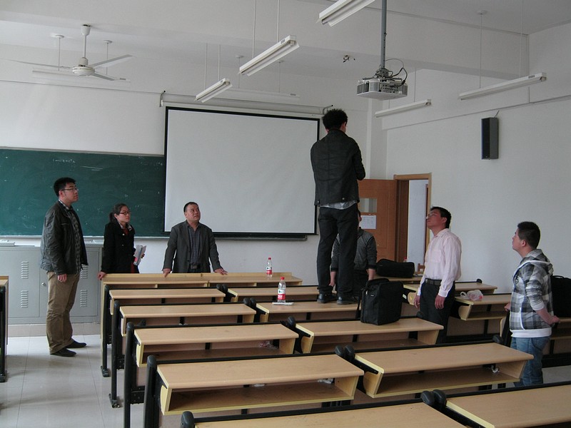 中心同志通过和圣井校区负责多媒体教室管理的物业人员交流,了解了该校区在多媒体维修维护过程中出现的问题和遇到的困难,在对数半的未上课教室进行一一检修排查之后,中心决定利用运动会和五一假期的四天时间,集中人员对圣井校区的多媒体故障进行统一检修,务必在五一假期结束之后能够保障多媒体教学的顺利开展。