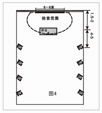 设计方法(如图):根据厅堂面积选择移频器及音箱功率。